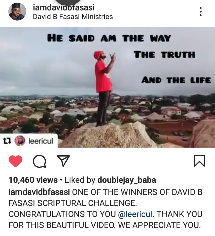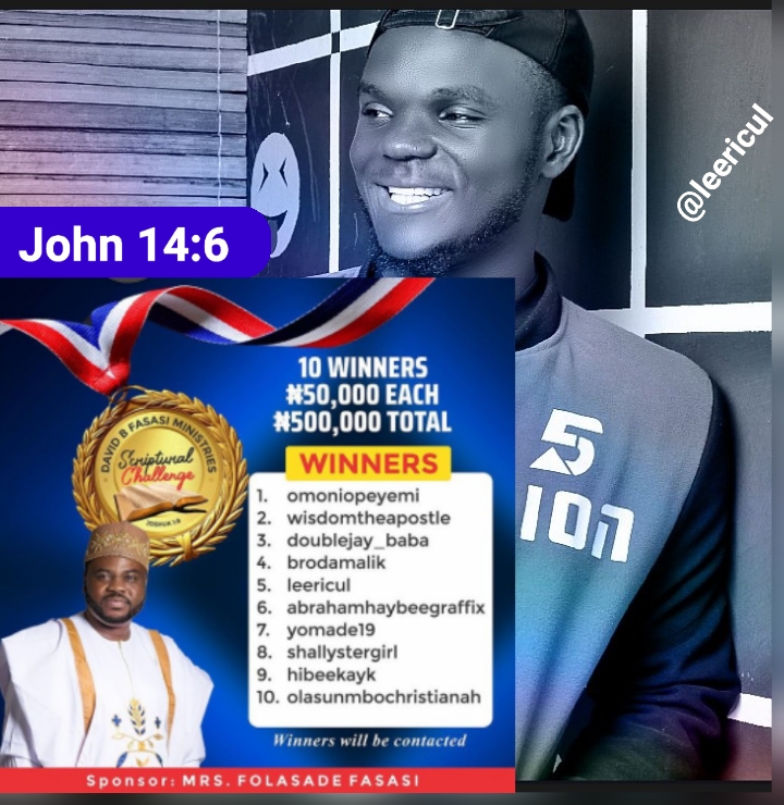 TRENDING; Leericul emerged Winner in Online Scriptural Challenge organised by David B Fasasi Ministry in Brooklyn, New York. Over 10k views.